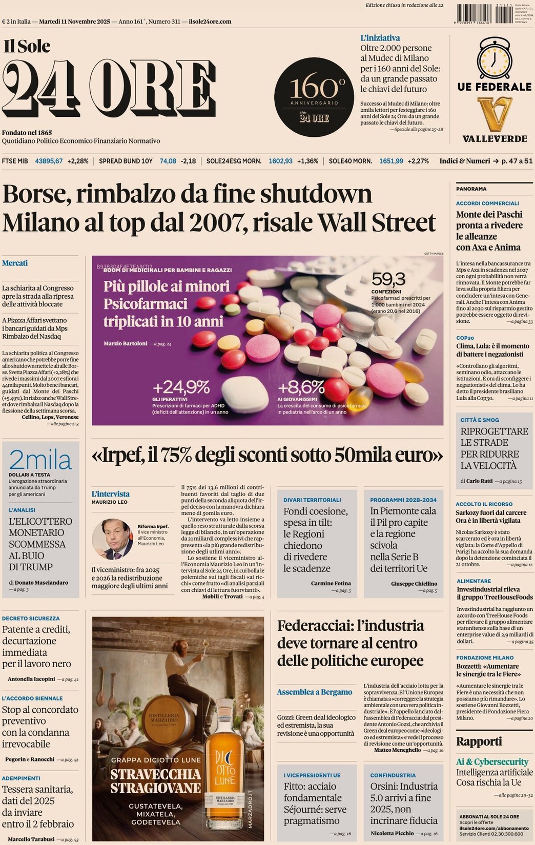 I Titoli Principali da Il Sole 24 Ore di oggi: