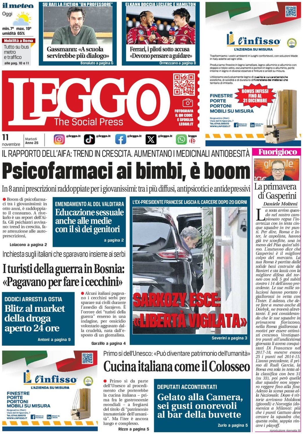 I Titoli Principali da Leggo di oggi: