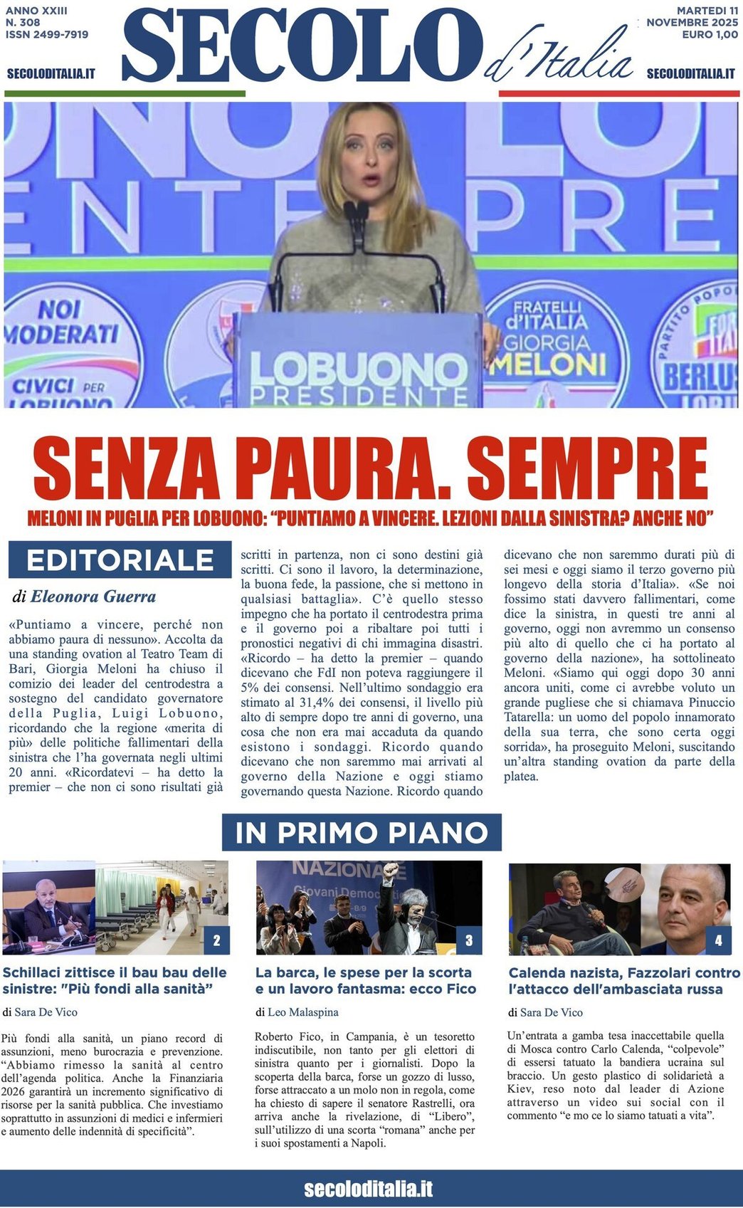 - SENZA PAURA. SEMPRE - MELONI IN PUGLIA PER L'OBUNO: 'PUNTIAMO A VINCERE. LEZIONI DALLA SINISTRA? ANCHE NO' – Eleonora Guerra