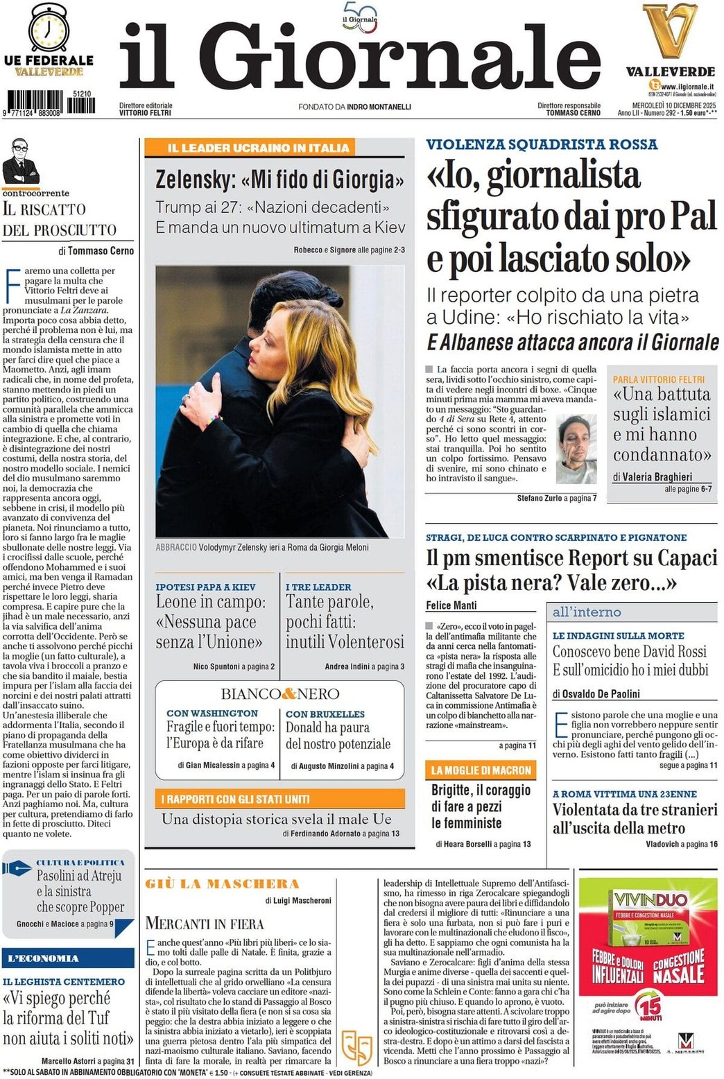 - Zelensky: "Mi fido di Giorgia" - Trump ai 27: "Nazioni decadenti" – Roberto e Signore alle pagine 2-3