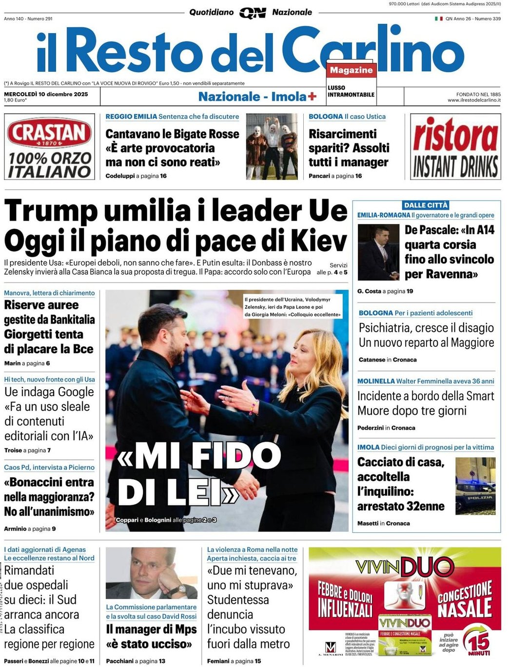 I Titoli Principali da Il Resto del Carlino di oggi: