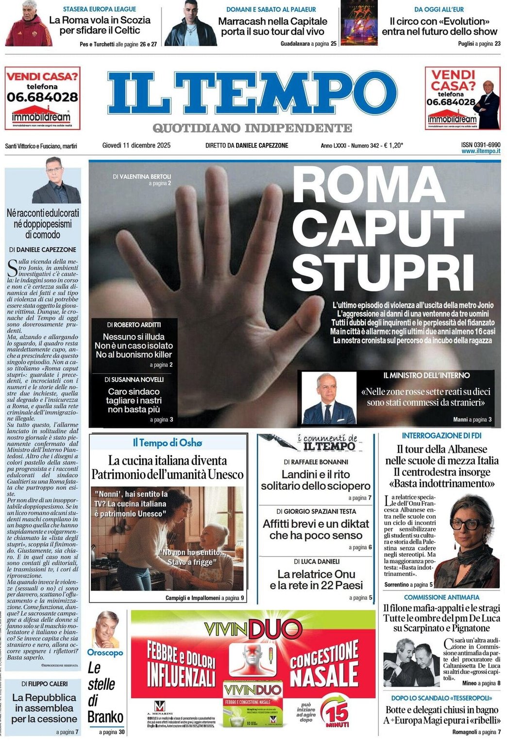 Prima Pagina Il Tempo di oggi, Giovedì 11 Dicembre 2025