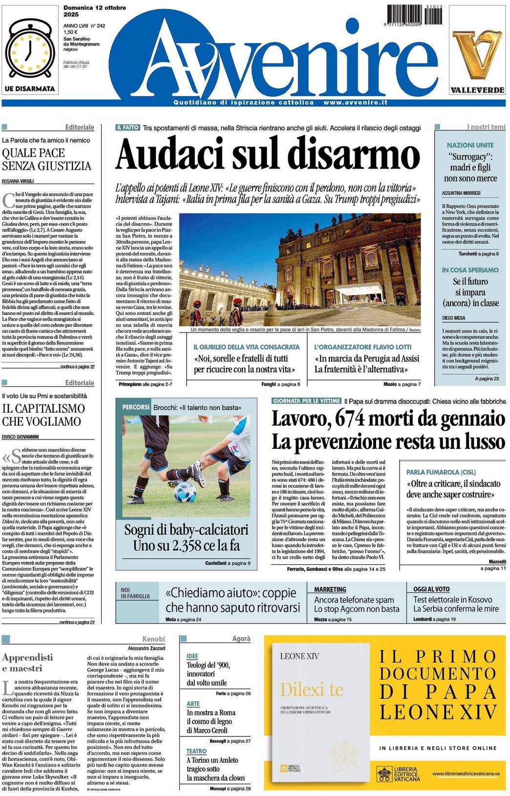 - Audaci sul disarmo - L'appello ai potenti di Leone XIV: «Le guerre finiscono con il perdono, non con la vittoria» – Intervista a Tajani: «Italia in prima fila per la sanità a Gaza. Su Trump troppi pregiudizi»