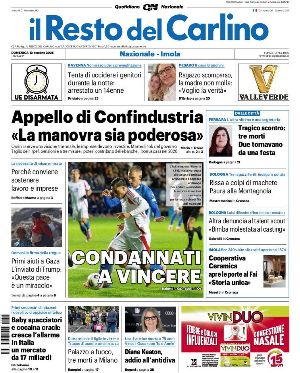 I Titoli Principali da Il Resto del Carlino di oggi: