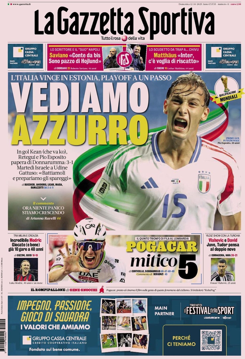 I Titoli Principali da La Gazzetta dello Sport di oggi: