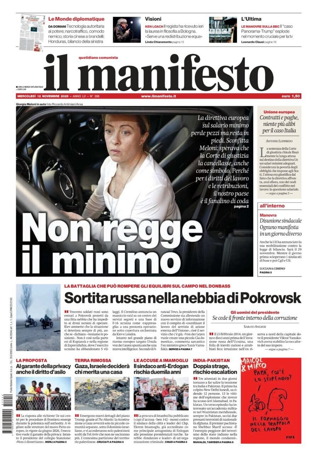 I Titoli Principali da Il Manifesto di oggi: