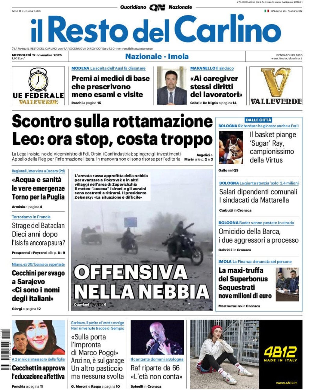 I Titoli Principali da Il Resto del Carlino di oggi: