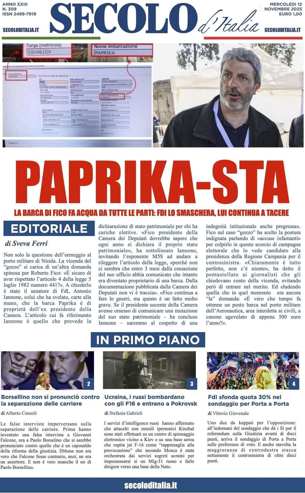 - PAPRIKA-STA - LA BARCA DI FICO FA ACQUA DA TUTTE LE PARTI: FDI LO SMASCHERA, LUI CONTINUA A TACERE – Sveva Ferri