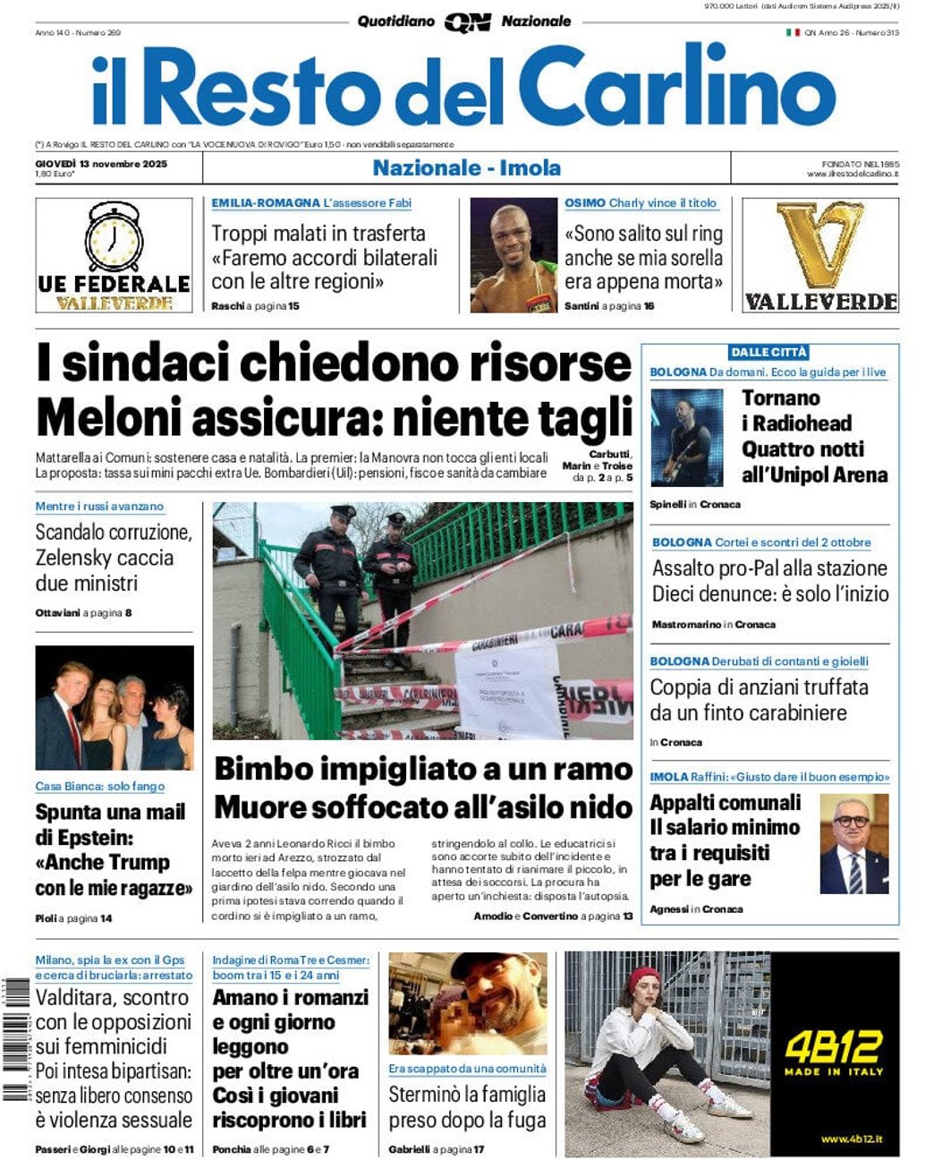 I Titoli Principali da Il Resto del Carlino di oggi: