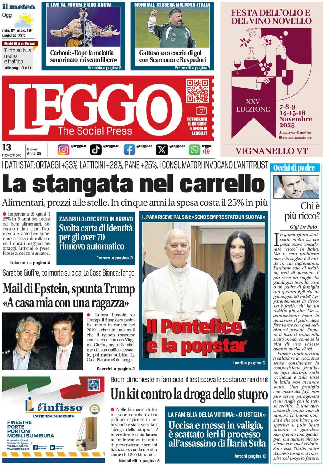 I Titoli Principali da Leggo di oggi: