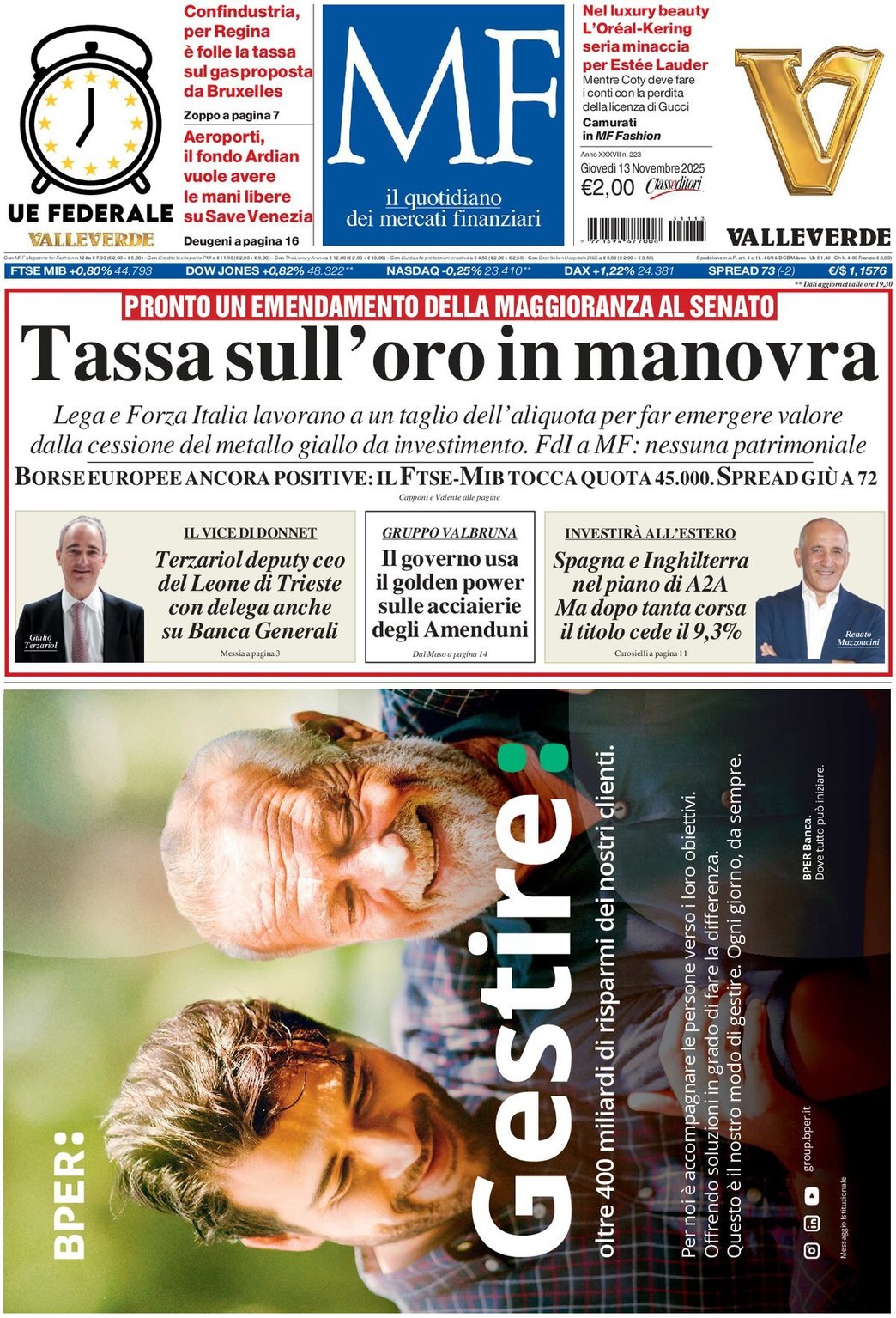 - Tassa sull'oro in manovra - Lega e Forza Italia lavorano a un taglio dell'aliquota per far emergere valore dalla cessione del metallo giallo di investimento. FdI a MF: nessuna patrimoniale