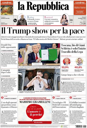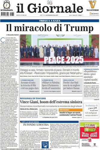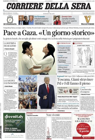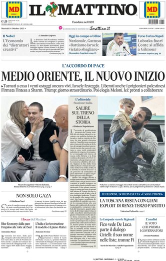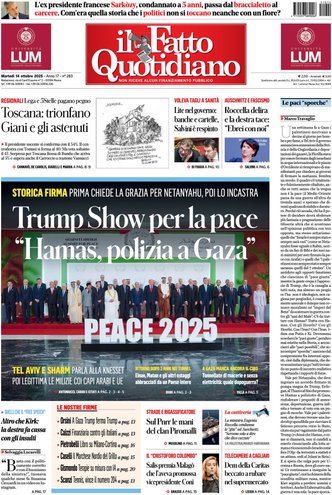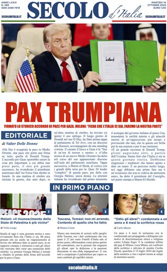 La giornata dei quotidiani italiani si apre sotto il segno di un evento storico che ha catturato l’attenzione internazionale: la firma della pace a Gaza, un gesto di grande rilievo celebrato da Donald Trump durante il summit in Egitto, che segna una tregua dopo anni di conflitti. I giornali ne descrivono la portata con toni diversi, dalla speranza e la festa in Israele per la liberazione degli ostaggi, al grido di cautela di chi avverte che la guerra potrebbe assumere nuove forme. I leader mondiali si sono dati appuntamento per scrivere quella che viene definita la “nuova era” del Medio Oriente, con la partecipazione attiva dell’Italia, presente e decisa nel suo ruolo diplomatico.