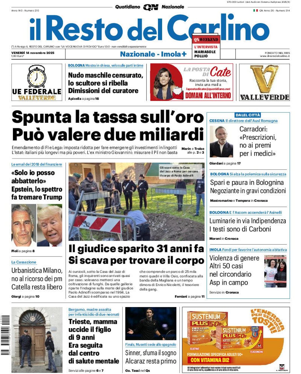 I Titoli Principali da Il Resto del Carlino di oggi: