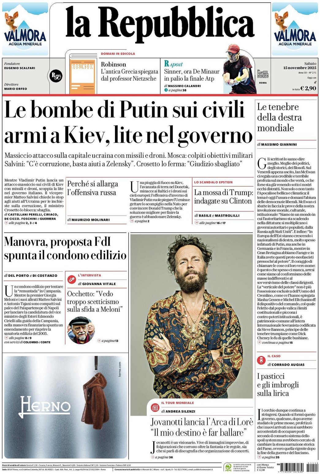 I Titoli Principali da La Repubblica di oggi: