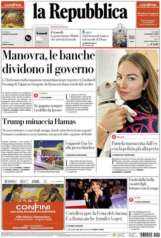 La giornata si dipana su molteplici fronti, dalla politica interna alle tensioni internazionali, passando per drammi di cronaca che scuotono il paese. La manovra economica torna spesso protagonista: i giornali raccontano di misure mirate a sostenere famiglie e lavoratori, con detassazioni sugli aumenti salariali e contributi per la casa, in un quadro che vede però anche tensioni tra governo e banche. Sul piano internazionale, l’allarme non accenna a calare. Dalla Striscia di Gaza arriva la minaccia di Trump con un ultimatum a Hamas, mentre l’Italia si prepara a un ruolo di primo piano nei piani di ricostruzione, da Tel Aviv si segnalano nuove offensive, e rilevanti sono le discussioni sulla sicurezza e l’equilibrio geopolitico. Intanto, da Milano a Verona, emergono storie drammatiche di violenza domestica e stragi familiari, con l’orrore che si consuma davanti agli occhi della comunità, e un sistema di sicurezza che appare ancora fragile. Tra tensioni politiche interne, proteste e nuove normative, la cronaca ci racconta di un paese che cerca di tenere insieme equilibri delicati, in un contesto nazionale e internazionale in continua evoluzione.