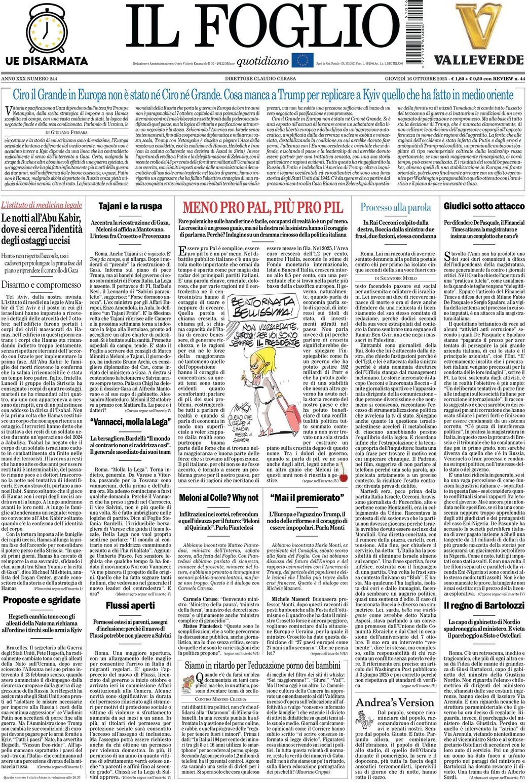 I Titoli Principali da Il Foglio di oggi: