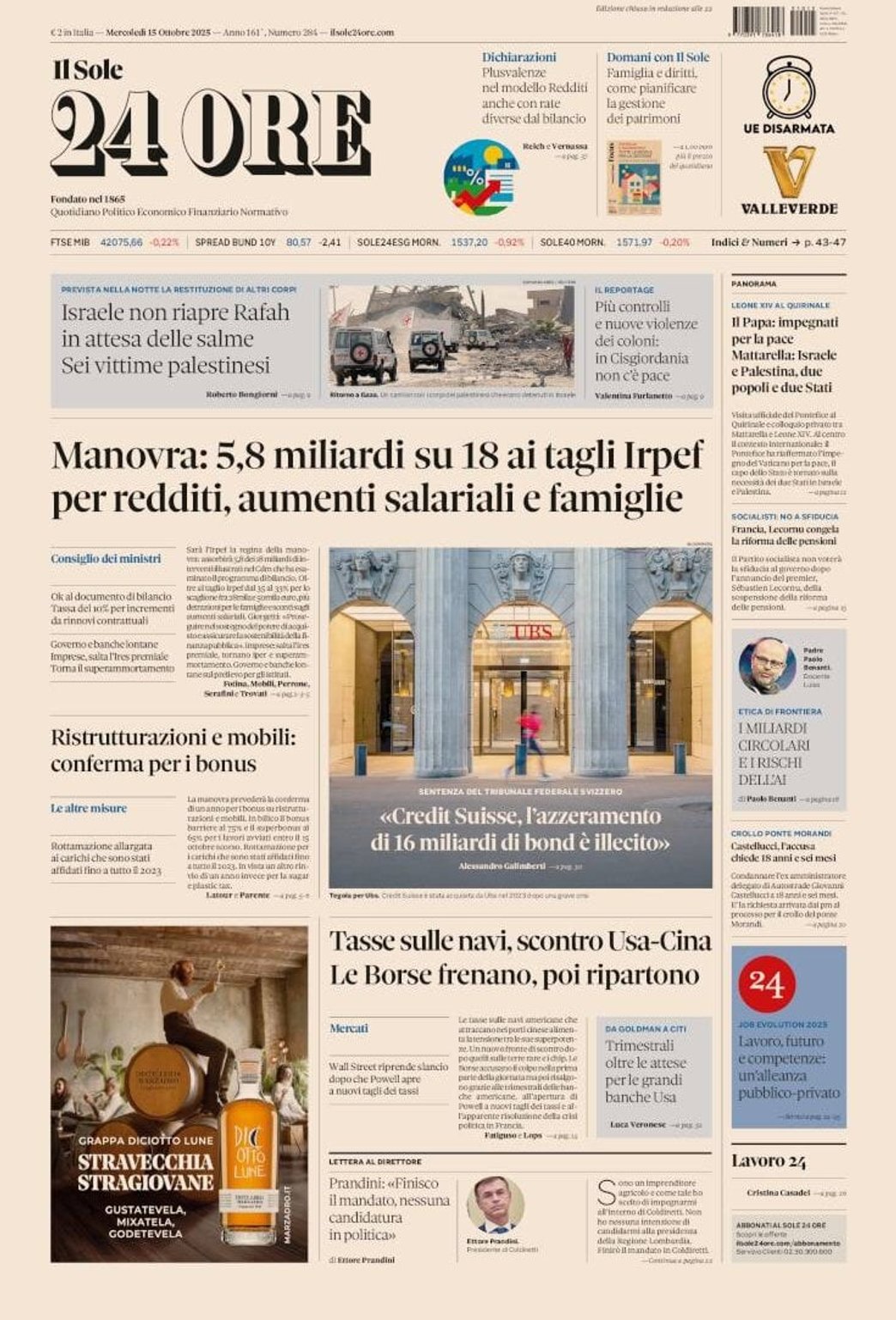 I Titoli Principali da Il Sole 24 Ore di oggi: