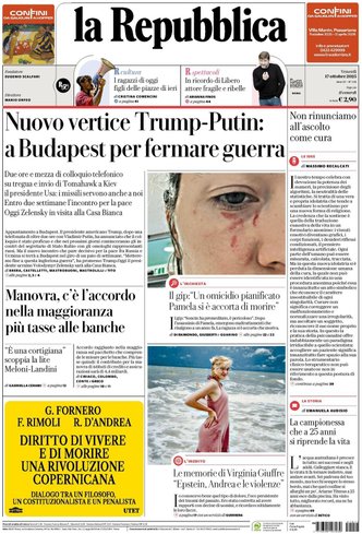 La giornata dei quotidiani italiani si apre con un mix di tensioni politiche, economiche e segnali di speranza sul fronte internazionale. La manovra economica viene al centro dell’attenzione con il via libera a misure che colpiscono in particolare il settore bancario, mentre tematiche sociali e politiche si intrecciano in un clima di confronto acceso. Il dialogo tra Trump e Putin, segnato da una lunga telefonata di due ore e dall’annunciato incontro a Budapest, apre uno spiraglio di pace, un tema che, pur fra freddezze e scetticismi, domina la narrazione di molte testate. Allo stesso tempo, la drammatica vicenda di Pamela, vittima di un femminicidio premeditato, scuote le pagine con un racconto che mette a fuoco la violenza sulle donne e l’urgenza di risposte sociali e istituzionali.