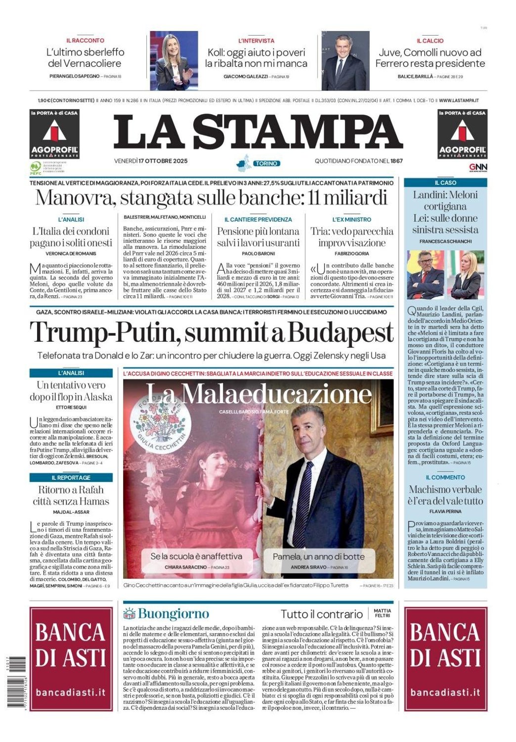 I Titoli Principali da La Stampa di oggi: