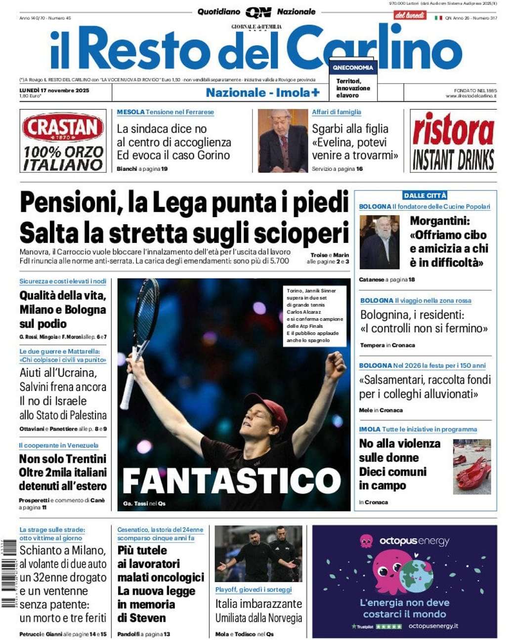 I Titoli Principali da Il Resto del Carlino di oggi: