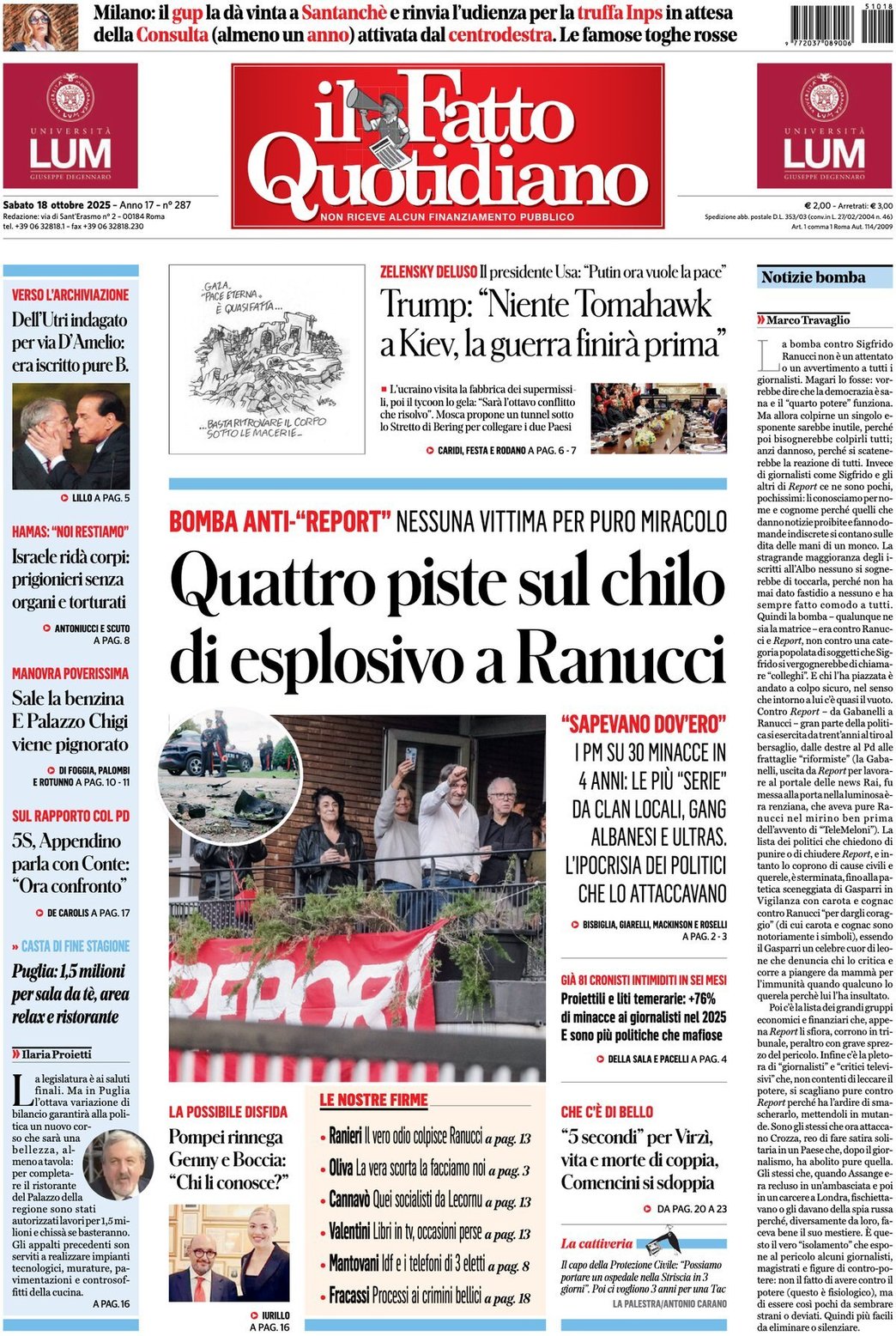 I Titoli Principali da Il Fatto Quotidiano di oggi: