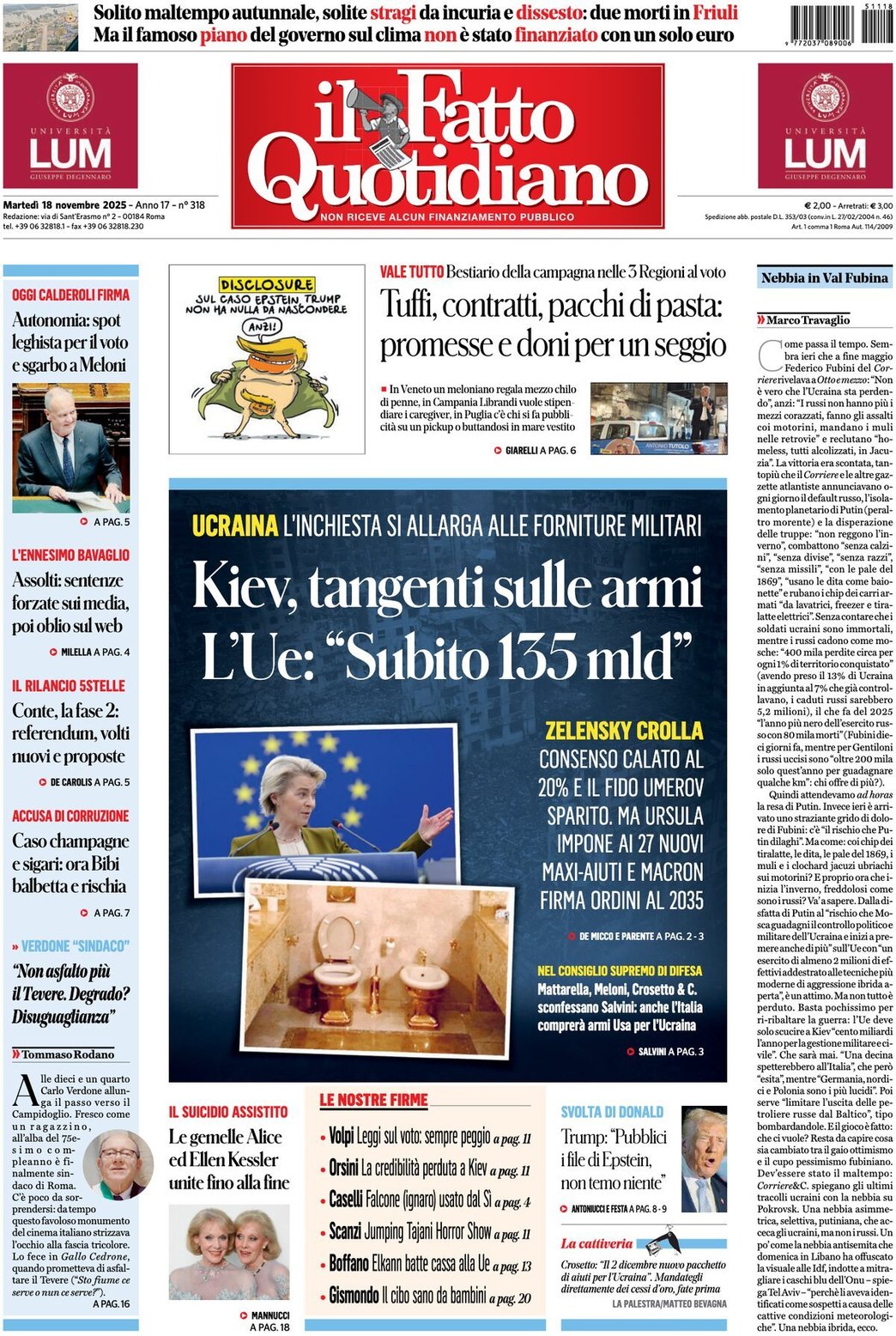 I Titoli Principali da Il Fatto Quotidiano di oggi: