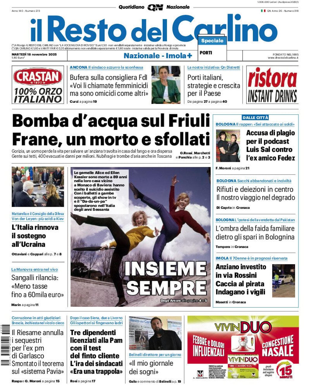 I Titoli Principali da Il Resto del Carlino di oggi: