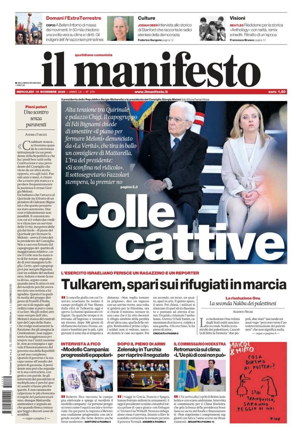 I Titoli Principali da Il Manifesto di oggi: