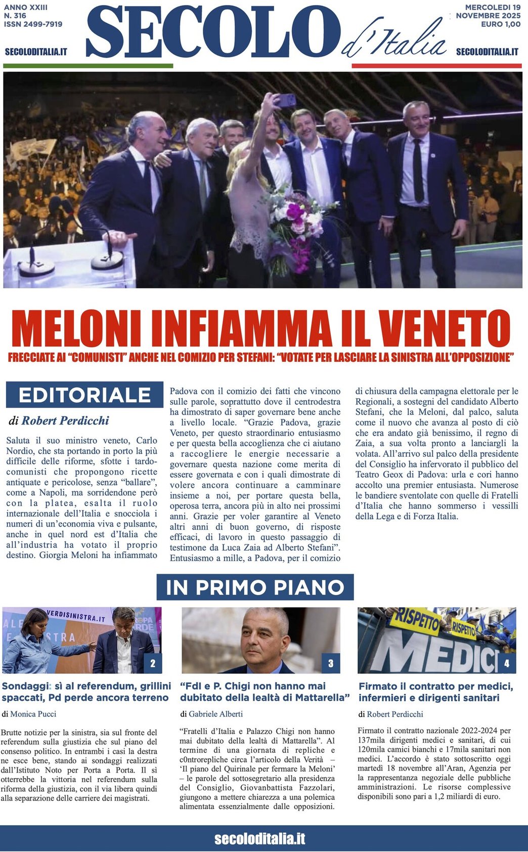 - MELONI INFIAMMA IL VENETO - FRECCIATE AI “COMUNISTI” ANCHE NEL COMIZIO PER STEFANI: “VOTATE PER LASCIARE LA SINISTRA ALL’OPPOSIZIONE” – Robert Perdicchi