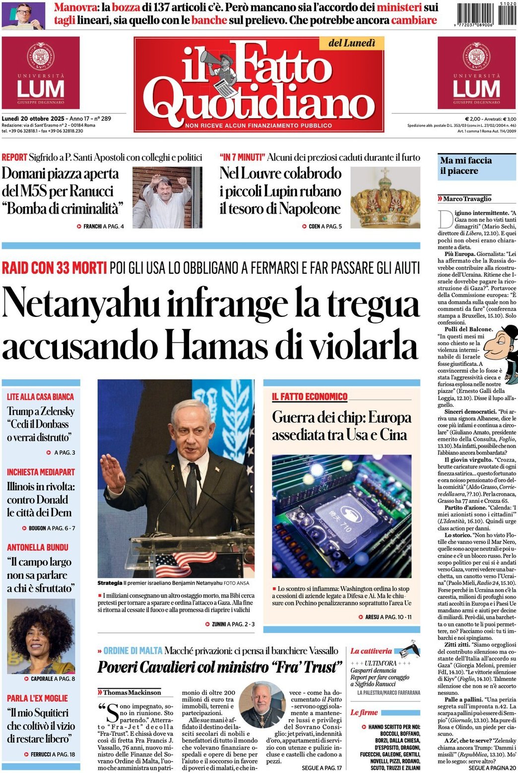 I Titoli Principali da Il Fatto Quotidiano di oggi: