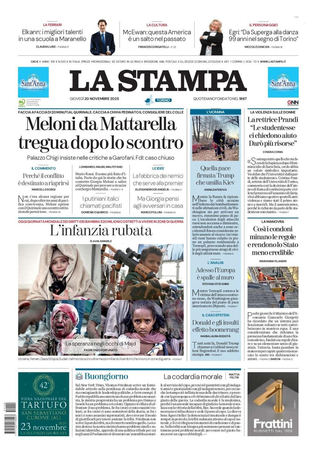 I Titoli Principali da La Stampa di oggi: