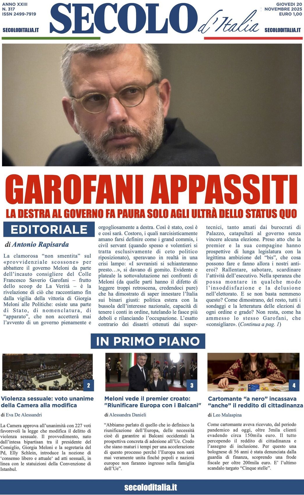 I Titoli Principali da Secolo d'Italia di oggi: