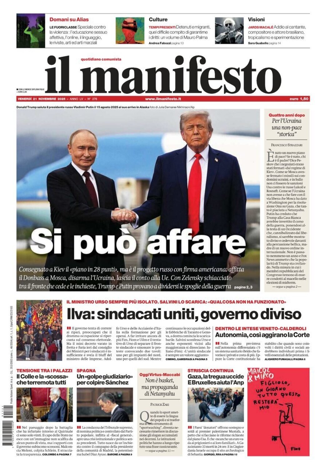 - Si può affare - Consigned to Kiev il piano in 28 punti, ma è il progetto russo con firma americana: affitta il Donbass a Mosca, disarma l'Ucraina, lascia il conto alla Ue. Con Zelensky schiacciato tra il fronte che cede e le inchieste, Trump e Putin provano a dividersi le spoglie della guerra