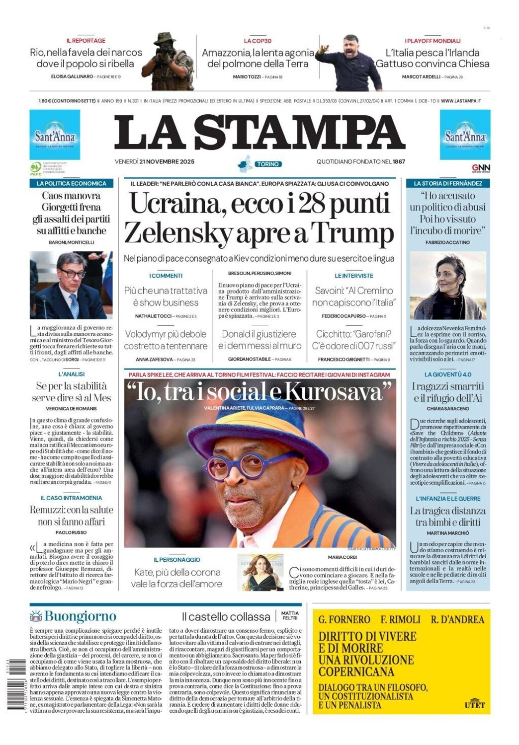I Titoli Principali da La Stampa di oggi: