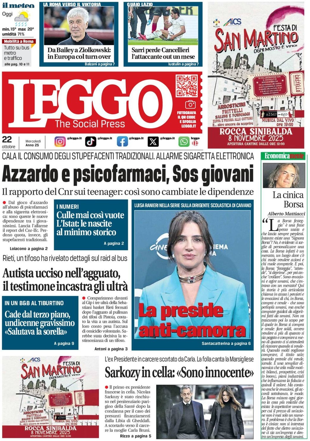 I Titoli Principali da Leggo di oggi: