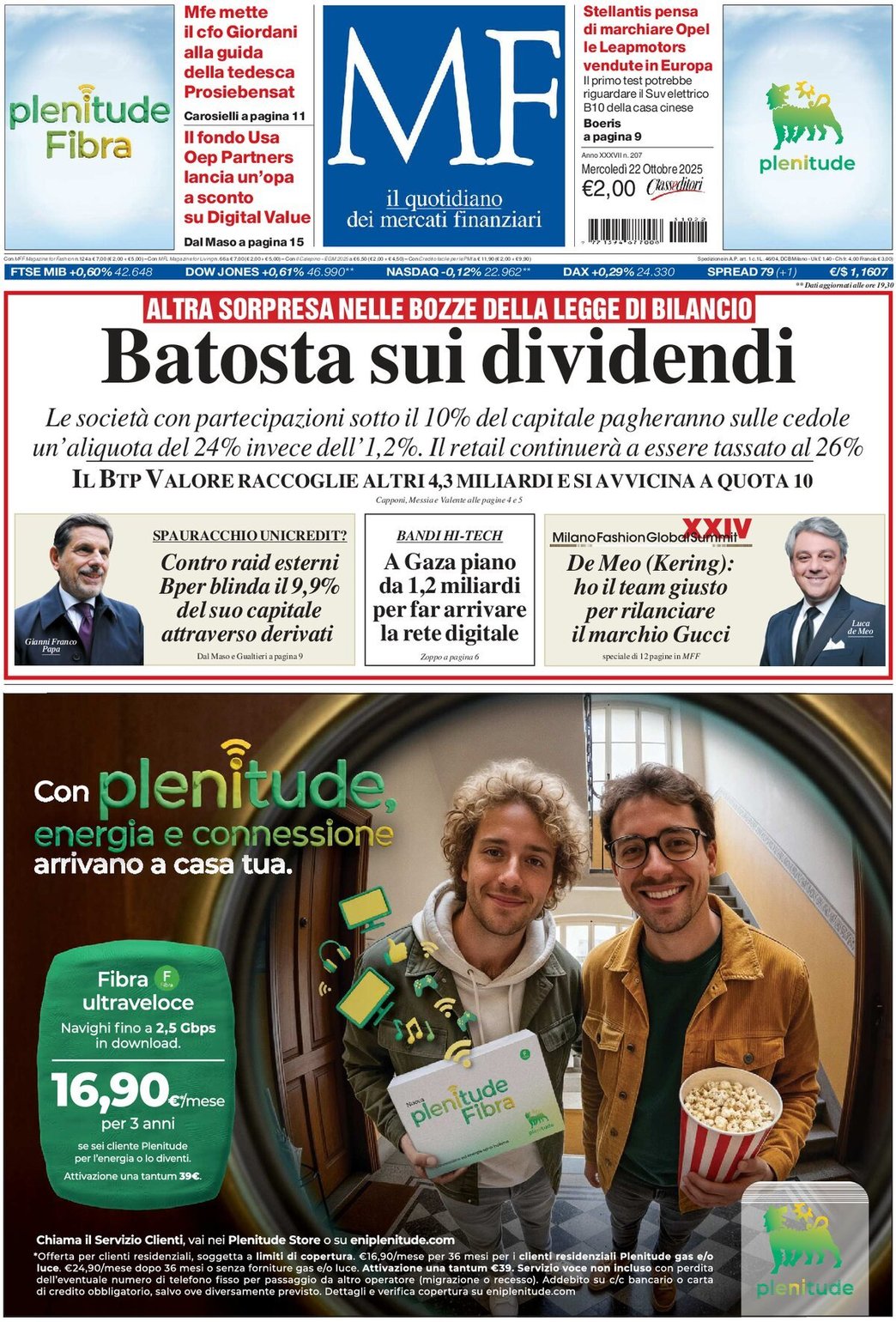 I Titoli Principali da Milano Finanza di oggi: