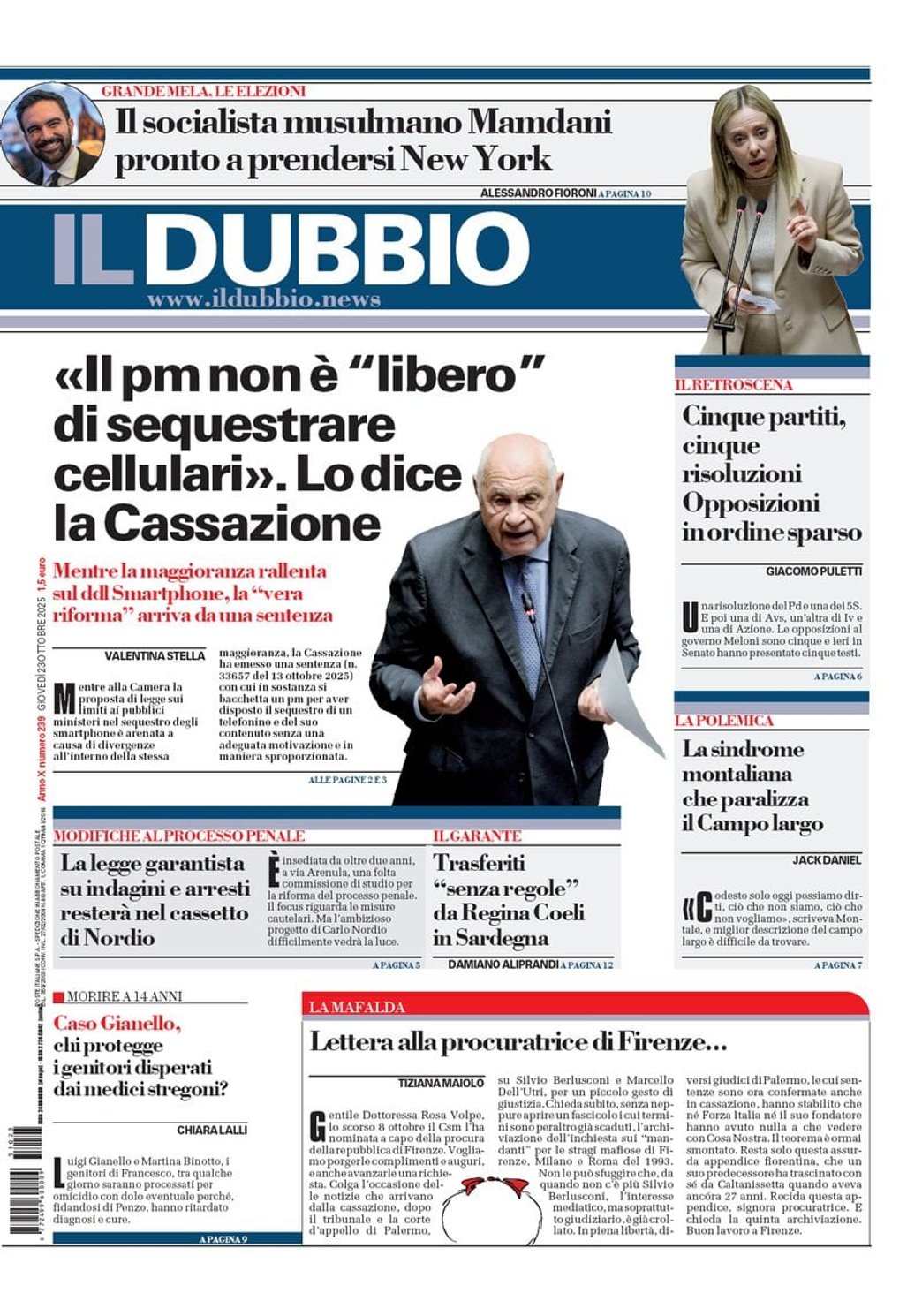I Titoli Principali da Il Dubbio di oggi: