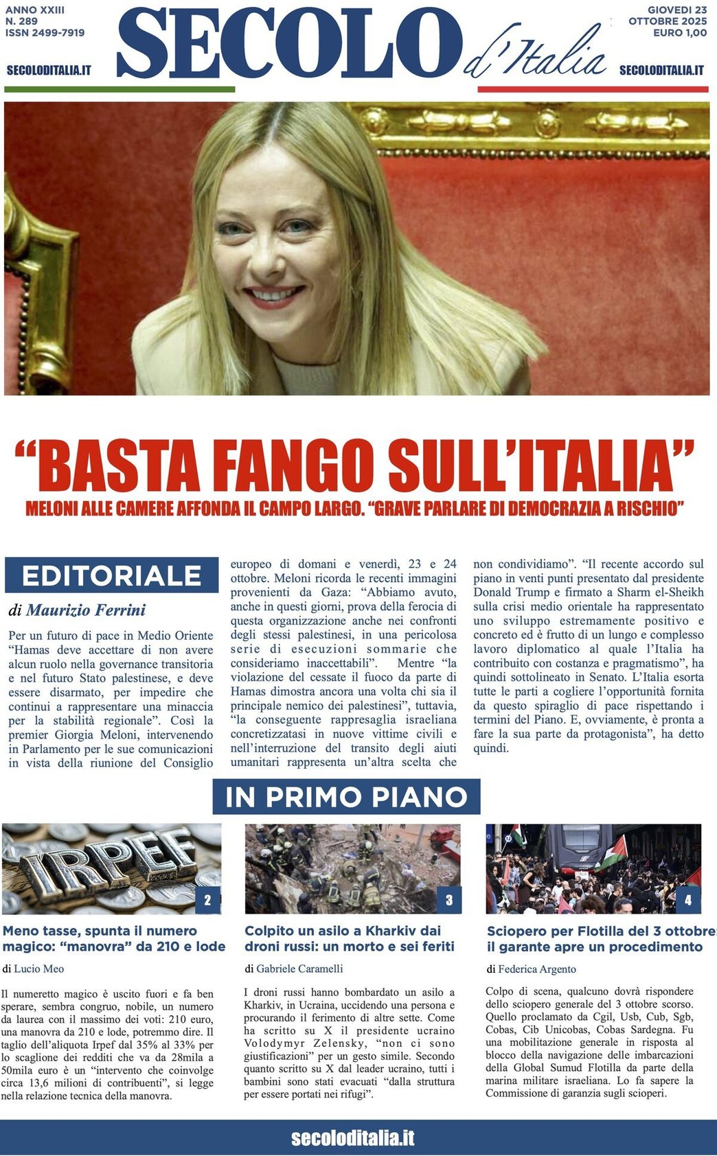 I Titoli Principali da Secolo d'Italia di oggi: