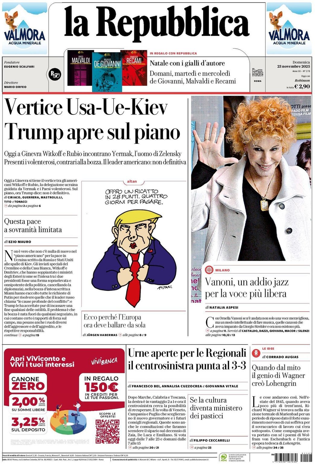I Titoli Principali da La Repubblica di oggi: