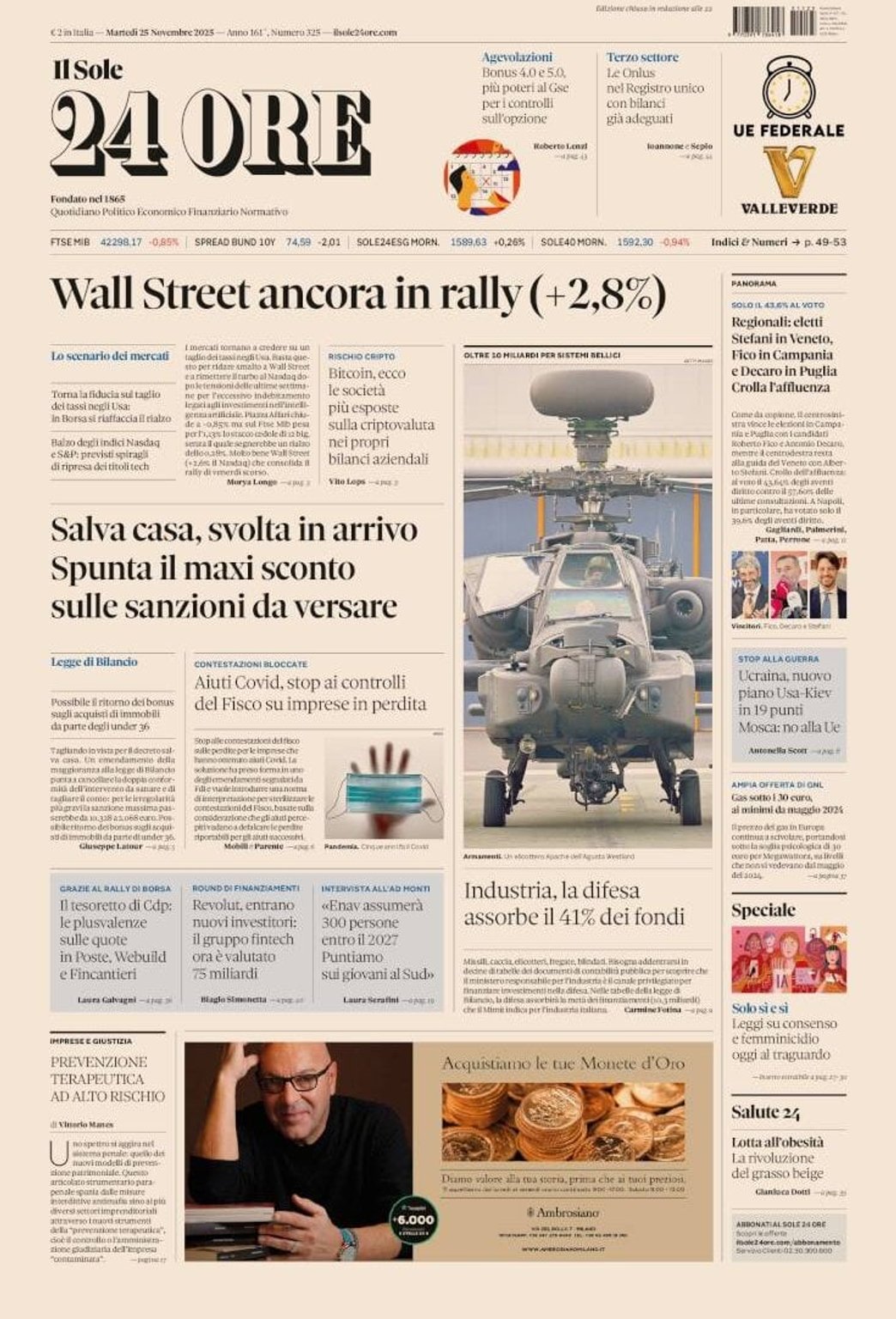 I Titoli Principali da Il Sole 24 Ore di oggi: