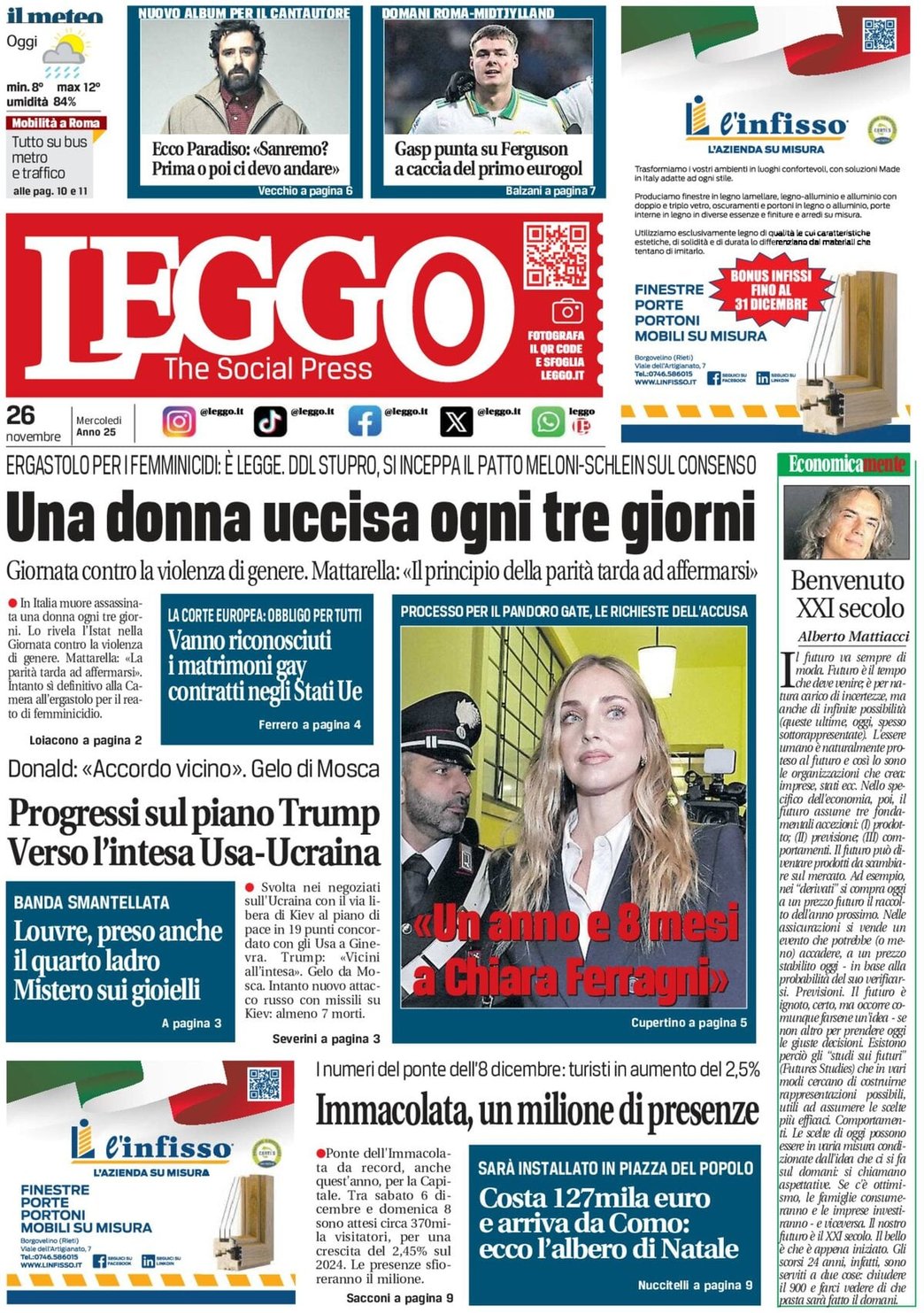 I Titoli Principali da Leggo di oggi: