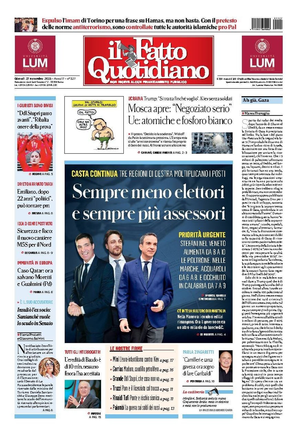 I Titoli Principali da Il Fatto Quotidiano di oggi: