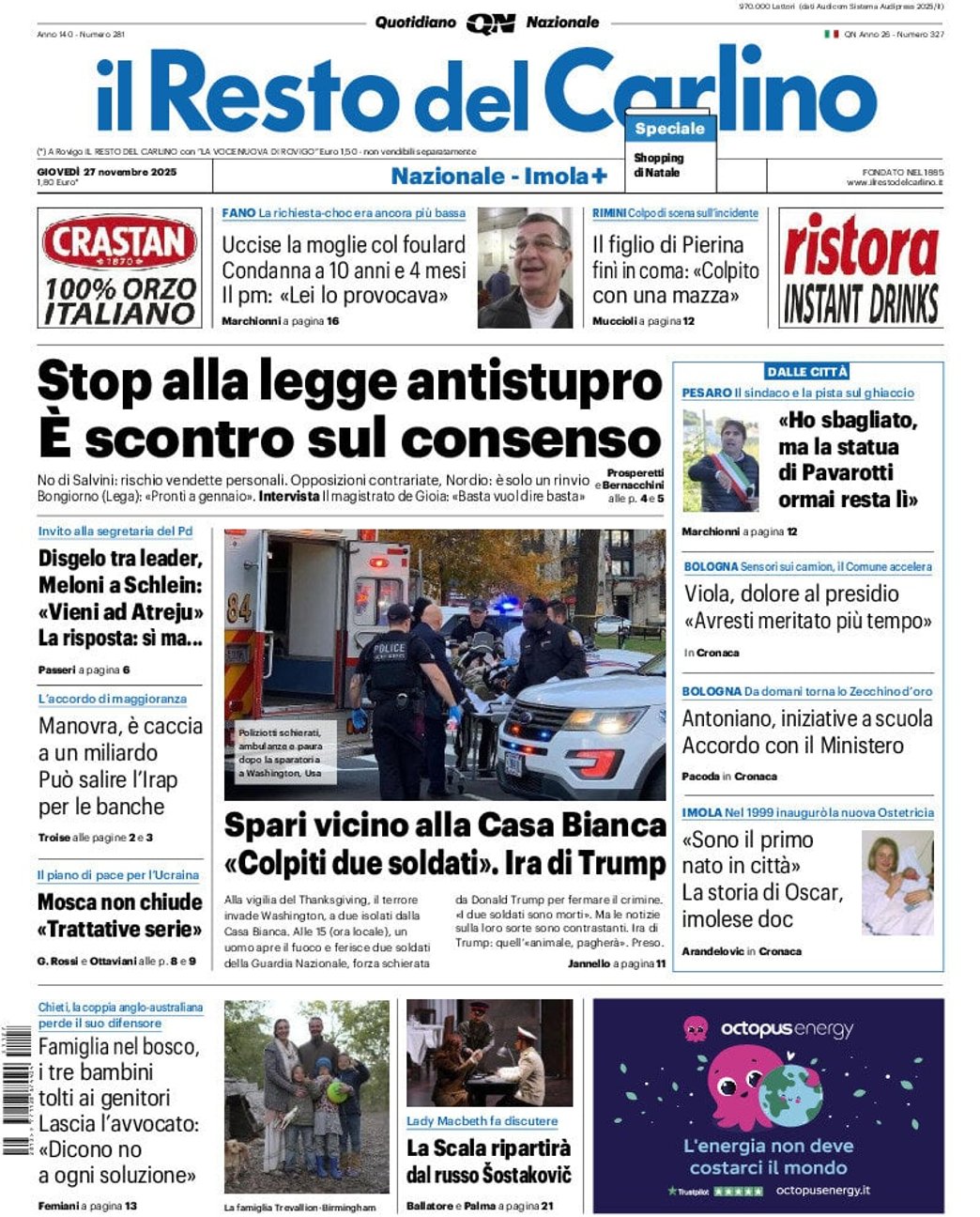 I Titoli Principali da Il Resto del Carlino di oggi: