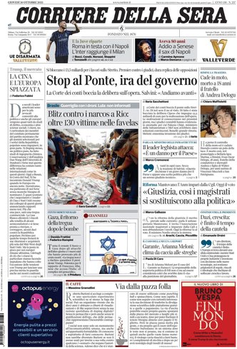 La giornata che emerge dalle pagine dei principali quotidiani italiani è segnata da un clima di forte tensione tra istituzioni e potere giudiziario, centrato principalmente sul no della Corte dei Conti al progetto del Ponte sullo Stretto. La decisione viene percepita come un’ingerenza ingiustificata dai vertici del governo, con la premier Meloni che denuncia una vera e propria “invasione dei giudici”, rafforzando la narrazione di uno scontro politico e istituzionale che attraversa il Paese. Parallelamente, oggi è il giorno decisivo per la riforma della giustizia, con il voto finale in Senato su una norma che promette di ristrutturare profondamente il sistema giudiziario, finendo sotto la lente anche delle Nazioni Unite, le quali hanno espresso preoccupazioni sull’indipendenza e sulla forza della giustizia italiana.