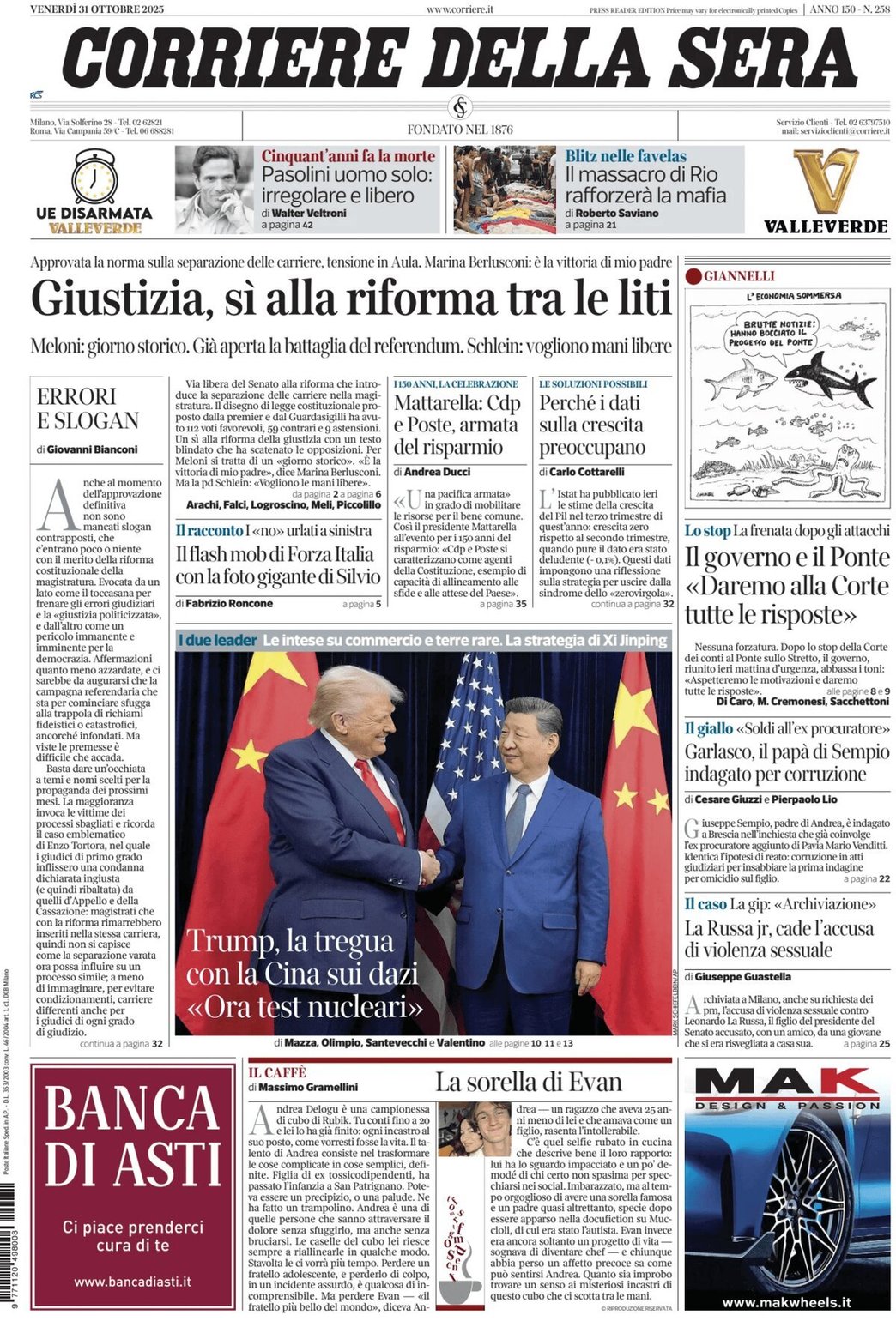 - Meloni: giorno storico. Già aperta la battaglia del referendum. Schlein: vogliono mani libere