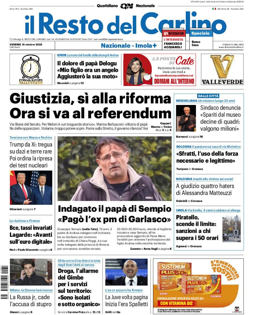 I Titoli Principali da Il Resto del Carlino di oggi: